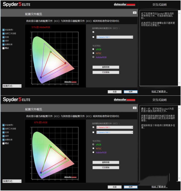 我們使用Spyder 5對其進行測試,這款屏幕有著67% sRGB色域、51% AdobeRGB色域,屏幕素質良好,顯示效果優良,可以滿足大多數用戶的使用需求。