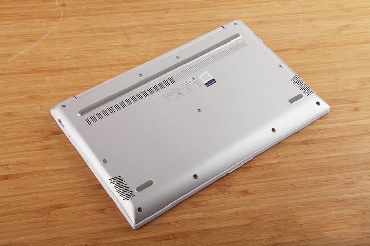 D面采用了同A面相同的色調設計,使用了兩小加一大三條灰色橡膠腳墊,防滑效果優秀,靠上側腳墊的位置設置有寬大的散熱進風口,為散熱模塊提供充足的進氣空間,靠近左右兩側小腳墊的附近分布有音響窗口,為用戶提供優秀的聽覺體驗。