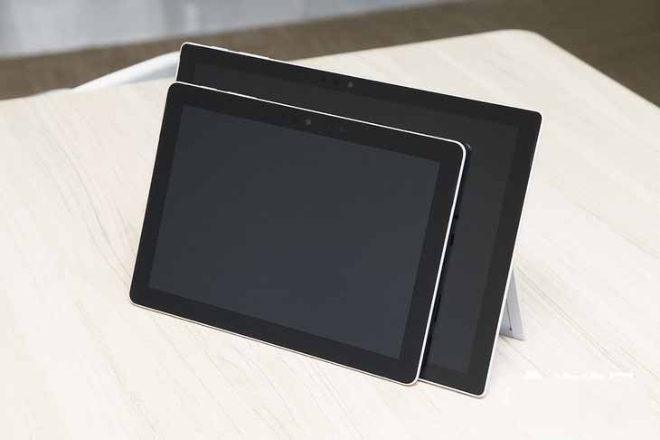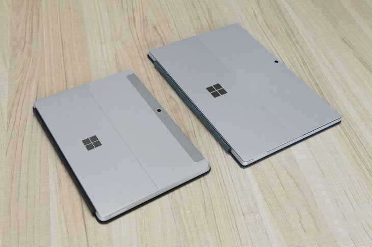 Surface Go與Surface Pro有著相似的外觀設計,從正面看,無論是前置的攝像頭模組還是屏幕邊框比例,Surface Pro和Surface Go基本上是一致的。