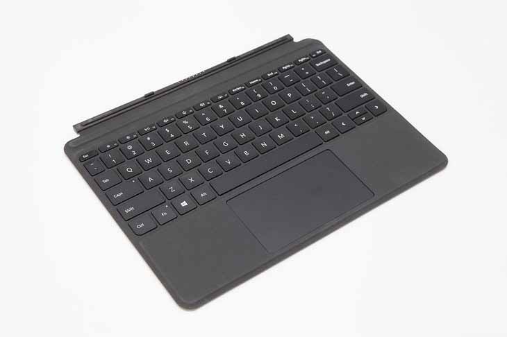 因為尺寸的不同,Surface Go雖然與Surface Pro使用的是相同結構的鍵盤蓋解決方案,但由于機身尺寸不同,微軟為Surface Go設計了專用鍵盤,在材質及觸感上與Surface Pro基本相同。