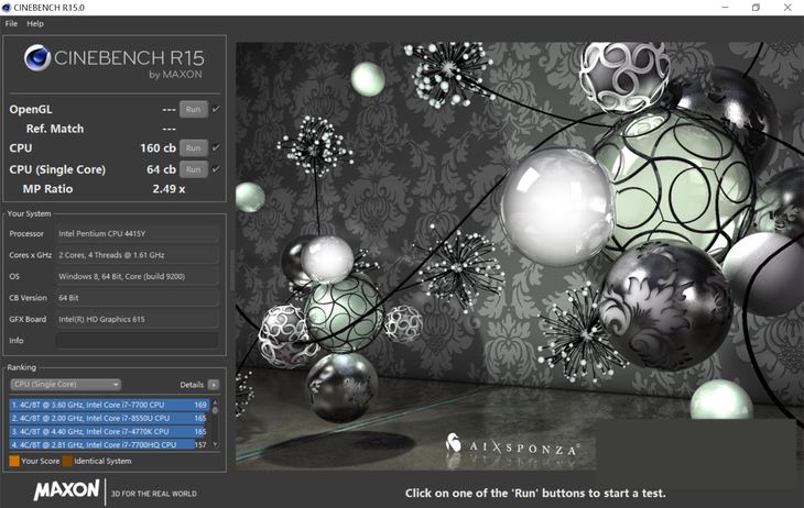 Surface Go搭載有英特爾奔騰4415Y金牌處理器、Intel HD Graphics 615核芯顯卡、8GB DDR3 內存以及128GB 固態硬盤,作為主打教育市場的一款二合一平板電腦產品,這一整體配置在日常使用中足矣應對大部分用戶需求,下面我們對其進行性能測試。