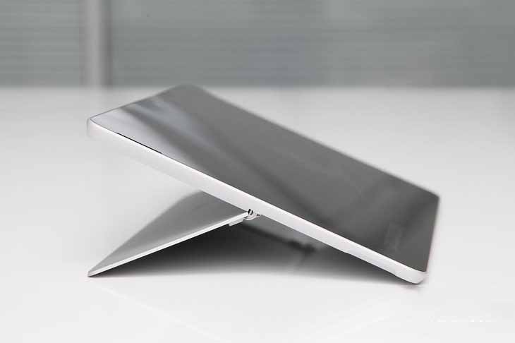 有著“田字格”LOGO的支架采用無級調節設計,可調角度非常大,可以達到約165°左右的極限開合角度,在達到極限角度后繼續施加壓力也不必擔心會造成損壞,支架本身的彈性會防彈所施加的壓力,機械轉擇軸設計,更加安全可靠,這一點與 Surface Pro 2017 和 Surface Studio 是相同的。