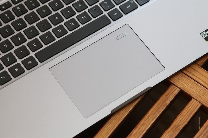 大尺寸觸摸板設計,支持多手勢操作,觸感順滑舒適,在觸摸板右上角還提供了一個指紋識別器,輕按即可快速解鎖,兩秒即可進入桌面,指紋信息本地存儲,不會上傳至云端,在保證方便的前提下有效為電腦內的數據安全提供防護。