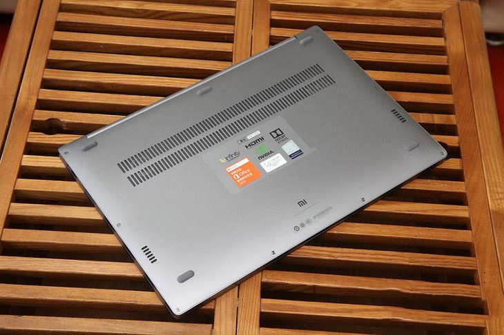 D面中心貼著機身的相關認證標簽,下側中心位置印有小米的LOGO,中心偏上的位置一排有著寬大的散熱窗設計,有利于機身內部的硬件進行散熱。