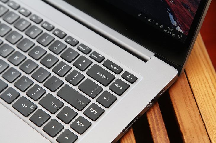 C面采用了與A面相同的銀灰色設計,有著19.5mm寬大的鍵距,,可以有效的防止誤觸,1.5mm鍵程搭配雙曲面鍵帽,使用手感舒適,鍵盤在最右側保留了全尺寸功能鍵,為不同工作的輸入提供了便利。
