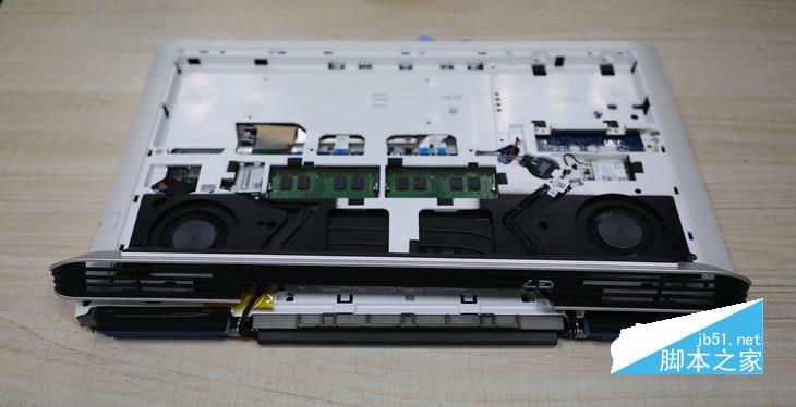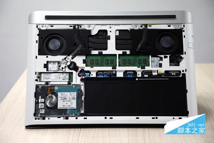 移除快拆窗口之后我們可以看到機身底面的主要零部件,我們可見的基本上都是可以由用戶自行升級或擴展的元器件,比如內存、M.2固態硬盤、2.5英寸SATA3硬盤以及無線網卡。