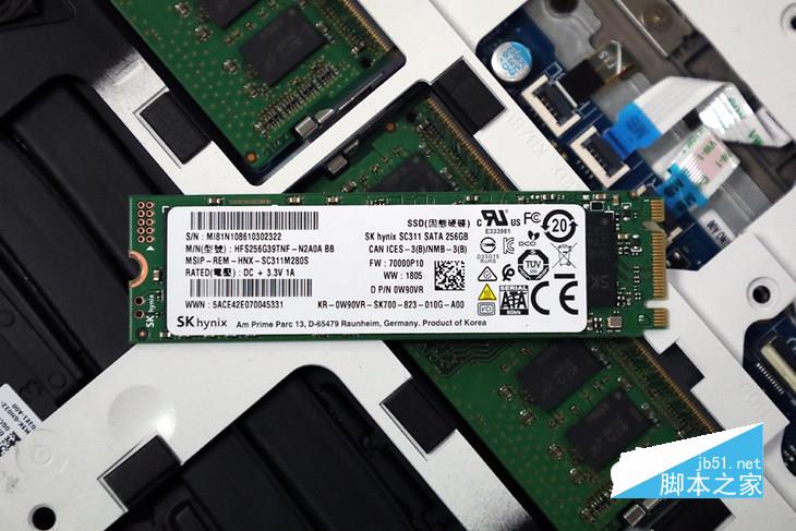 接下來被拆下的是這塊來自海力士的M.2(SATA)固態硬盤,有著256GB容量,滿足用戶高速存儲的需求,為用戶帶來更快的啟動速度。