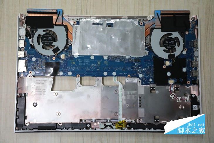 戴爾G7采用了類似于三明治的內部結構,其中在最頂面的C面上安裝的是鍵盤與觸摸板,主板、其他元器件以及散熱模塊被固定在了夾層中框,最后D面是快拆窗口,夾層中框與C面之間使用螺絲進行固定。