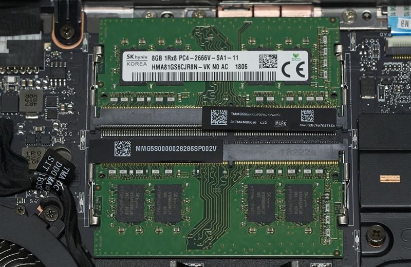 內存型號是海力士DDR4 2666MHZ 8GB,2條組成雙通道共16GB。用戶可以自行升級為2根單條16GB內存以獲得32GB容量。