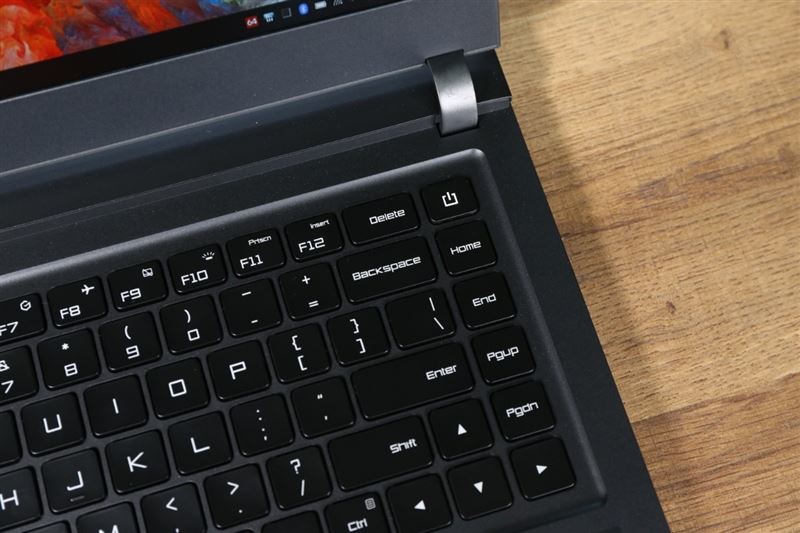 由于屏幕使用了窄邊框設計,筆記本整體尺寸縮小,無法加入全尺寸的數字鍵盤。15.6寸的筆記本沒有小鍵盤可能會讓某些喜歡數字鍵的人感到不適,但是好處就是可以雙手居中打字。