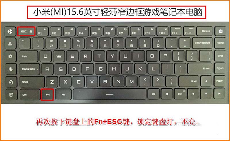 2、如果我們再按下鍵盤上的Fn+ESC鍵,則鎖定鍵盤燈不亮,即使再按下鍵盤上的F10功能鍵,鍵盤燈也不會再亮。如需要使用鍵盤燈,需要再次按下鍵盤上的Fn+ESC鍵。