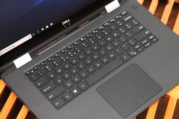 戴爾XPS 15-9575在C面處理上還是采用了手感非常舒適的碳纖維材質(zhì),不僅觸感十分細(xì)膩,而且更加輕便堅(jiān)韌。全尺寸孤島式鍵盤為C面留出更多空間,在實(shí)操過程中讓手腕有更多放置空間,緩解長(zhǎng)時(shí)間使用過程中帶來的疲勞感。
