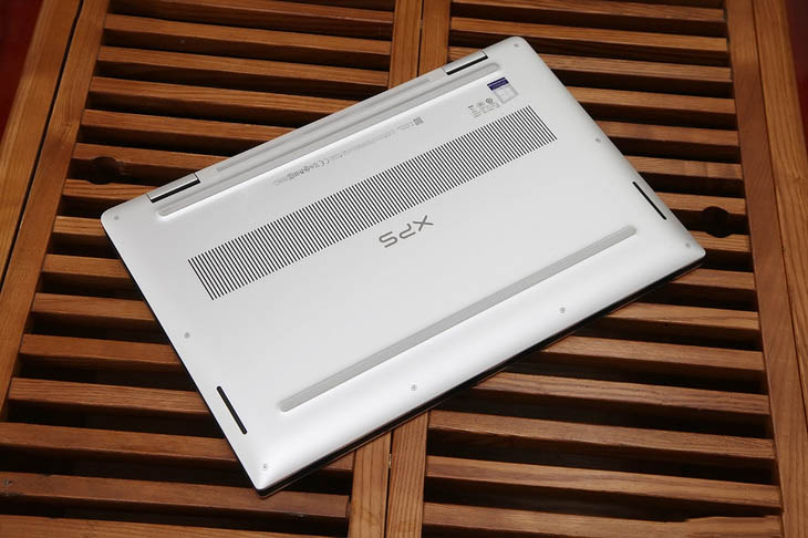 戴爾XPS 15-9575在D面可以清晰看到電鍍鉻的XPS標(biāo)志以及一長(zhǎng)排從整塊陽(yáng)極氧化鋁中間切割出的柵格散熱口。XPS系列一直沿用的長(zhǎng)條狀防滑腳墊平行位于機(jī)身兩端。底部?jī)蓚?cè)音響開孔+D面頂部進(jìn)風(fēng)口。選擇底部設(shè)置音響開孔,與桌面等物體會(huì)形成一個(gè)阻音面。但在實(shí)際使用中發(fā)現(xiàn),開孔的位置并不在筆直的底部,而是帶有一定的弧度,音質(zhì)并未受到影響。