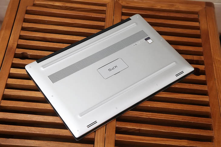 戴爾XPS 15-9570在背面的防滑設計上采用兩條長條形防滑腳墊,平行位于機身D面。與17版黑色防滑腳墊不同,此次腳墊也更換為了白色,整體性表現(xiàn)突出。頂部靠上是工整切割出的一排進風口。D面中心為XPS獨到匠心的設計,將筆記本電腦信息遮擋在金屬板下方,利用磁鐵將金屬板吸附在背板上,金屬板上則印有XPS獨特的標志logo。底部順著上揚的弧度左右兩側分別留有音頻通道,既方便實現(xiàn)無遮擋的享受音樂,又不影響D面整體美觀。