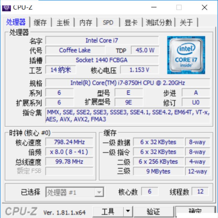 戴爾XPS 15-9570機器配置的是i7-8750H處理器,基于Intel Coffee Lake架構設計,14nm制造工藝,六核心十二線程,主頻2.2GHz,睿頻4.1GHz,TDP為45W。關于這顆i7-8750H大家都已經很了解了,相較上代標壓i7處理器,其在性能方面有了大幅度提升。六核心十二線程的強大處理能力對于長時間調取4K視頻素材或從事圖形制作的專業(yè)人士來說,是一個非常不錯的選擇。