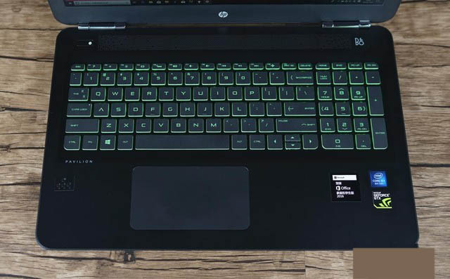 光影精靈傲騰版的C面為一體式金屬面板,表面采用拉絲工藝,手感非常光滑細膩,綠色背光的鍵盤帶有小鍵盤區,按鍵手感良好,反饋感和回彈力度適中,可以滿足長時間的使用。鍵盤上方是帶有B&O音響,聲音洪亮,高音量下沒有破音,品質非常不錯。