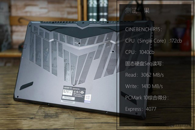 在基準測試中,神舟精盾T96E在Cinebench R15中單線程得分172cb,多線程得分1040cb,這一性能發揮要稍低于i7-8750H的主流水準,看來存在一定降頻問題。而在硬盤性能測試中,得益于高品質三星固態硬盤的加持,高達3062MB/s的順序讀取速度與1410MB/s的順序寫入速度都是目前的上游水準,性能出眾。在PCMARK 10測試中,Express模式下4077分表現良好,硬盤的表現拉高了整機生產力水平。
