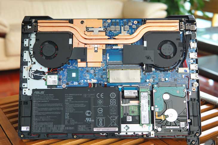 內部結構方面和FX80GE的最大區別是將缺失的一根熱管補齊,顯然是為了壓制GTX 1060的高發熱。單條8GB內存,預留了一個SODIMM內存插槽。M.2和SATA 2.5英寸硬盤位均為一個。