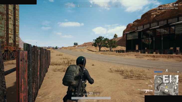 我選擇了最普通的單人(SOLO)模式試玩,視角是傳統(tǒng)的第三人稱,地圖選擇了隨機。無論是樹木叢生的初始地圖,還是后來新出的視野開闊的戈壁地圖,都對玩家有著極高的競技要求。遮擋物多則需要注意隱藏起來的敵人,而在戈壁上,我更要時刻提防遠(yuǎn)處的狙擊手。