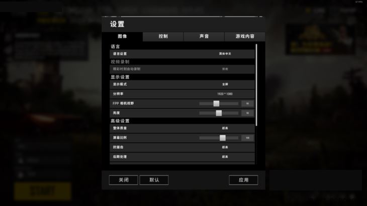 進(jìn)入游戲,由于滿足了游戲官方的推薦配置,我果斷將《絕地求生》的畫面調(diào)到最高。這款游戲的畫面還是很細(xì)膩的,雖然戰(zhàn)況激烈,但真實的建模讓游戲內(nèi)的景色不錯,且更高的畫質(zhì)不但能讓玩家的心情愉悅,也能讓我們更看得清細(xì)節(jié)及遠(yuǎn)處的敵人。