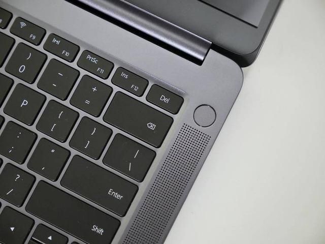 細節方面,榮耀MagicBook配備全尺寸定制鍵盤,1.3mm鍵程,有兩種明暗度、三級調節的鍵盤背光,作為一款非游戲本,也能配備背光鍵盤,無疑是較少見的。此外,榮耀MagicBook筆記本擁有指紋識別電源鍵,開機登錄只需要7.6秒。