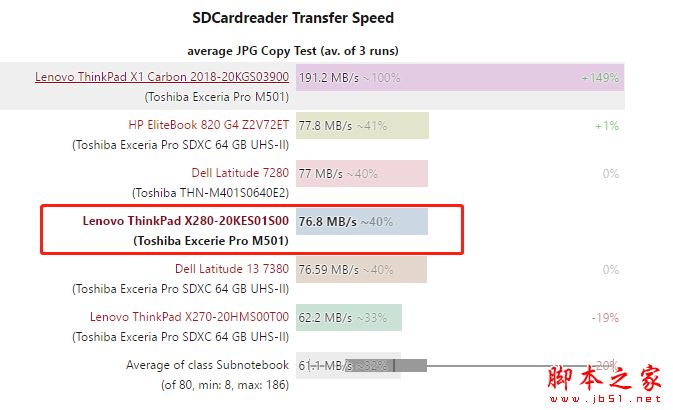 使用東芝Exceria Pro M501的測試結果只是平均水平,X1C 2018的讀寫速度要快上很多。