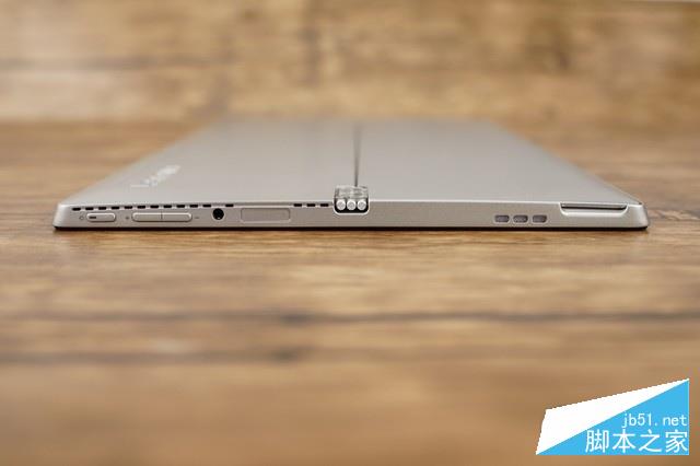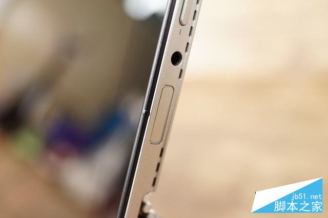 右側(cè)接口電源按鈕、音量加減、3.5mm耳機接口、指紋識別模塊 下方則是揚聲器的開孔以及方便打開支架的凹槽,左右對稱。