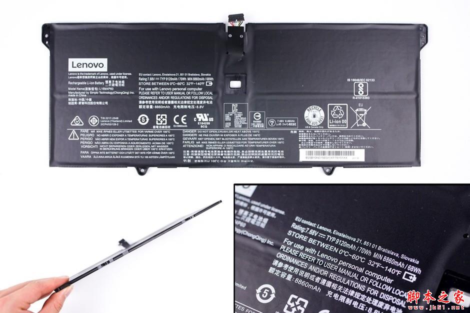 可能是由于產(chǎn)品機身厚度變薄的原因,YOGA 6 Pro電池的容量略微有一些縮小。在保持700Wh/L高密度電芯設計的情況下,電池容量達到70瓦時。