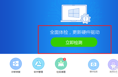 2、下載安裝完成之后,打開軟件點擊立即檢測,如下圖所示: