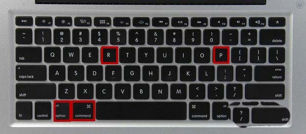 2)在鍵盤上找到以下按鍵:Command (⌘)、Option、P 和 R。您需要同時按住這些鍵。