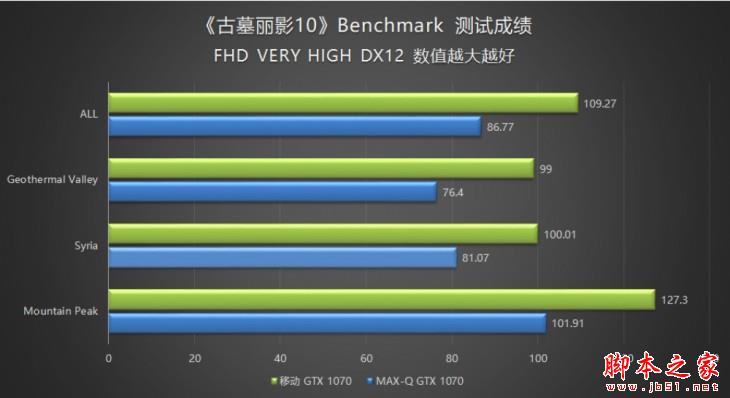 根據以上三組測試成績,我們基本可以判定搭載MAX-Q 的GeForce GTX 1070與標準版移動端GeForce GTX 1070 的性能差距在 11% 左右。
