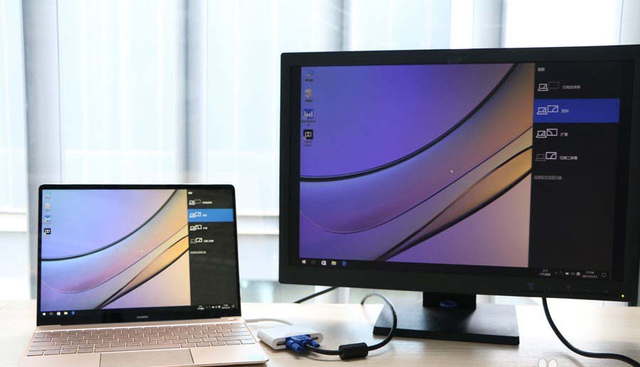 2、復(fù)制:外接顯示器和 MateBook 顯示相同內(nèi)容。