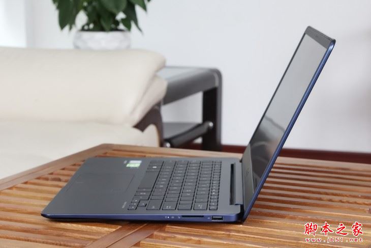 靈耀U4100UQ B面采用了窄邊框的屏幕設(shè)計(jì),C面的配色則是與機(jī)身整體一致的寶石藍(lán)。