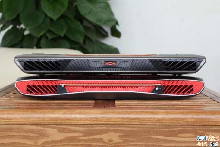 兩者都采用尾部出風設計媽蛋新一代的GX701在尾部設計上有一定改變,首先顏色從酷炫的紅色變成了黑色,取消了出風口的燈光。另外與GX800相同的電源接口也被安置到了尾部正中央的位置。