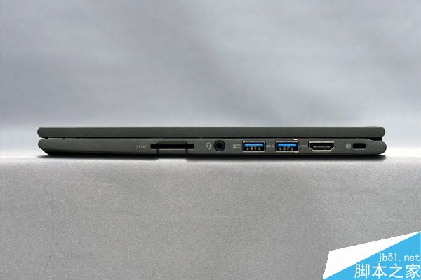 機(jī)身內(nèi)部,最高支持搭載Intel Core i7-7500U處理器,配備8GB內(nèi)存和256GB M.2固態(tài)硬盤。機(jī)身兩側(cè)提供了USB-C、USB 3.0、HDMI和SD卡插槽。
