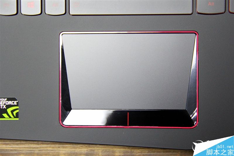 ↑↑↑拯救者R720觸控板四周采用了與鍵盤區相同的紅色腰線,非常醒目。需要注意的是它僅僅是裝飾,不支持背光。觸控板略帶凹陷,實際操控體驗更加準確。