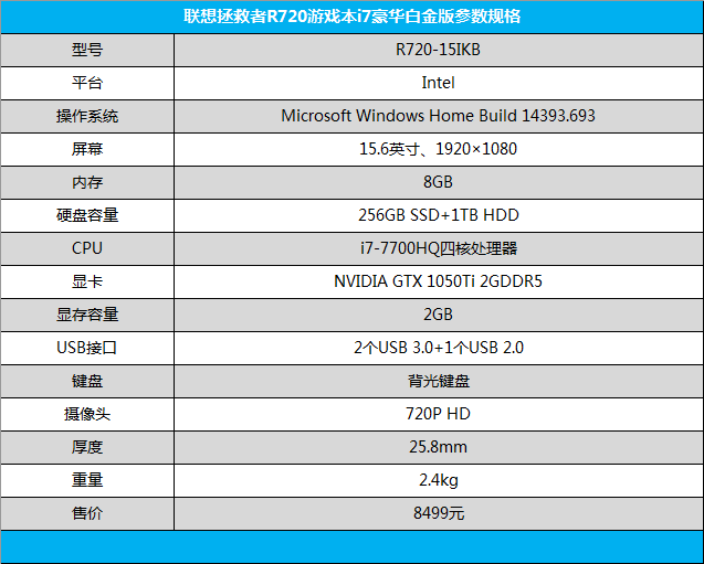其它配置方面,拯救者R720采用了15.6英寸1080P顯示屏,搭載了Intel Core i7-7700HQ四核處理器,配備了256GB固態硬盤和1TB機械硬盤