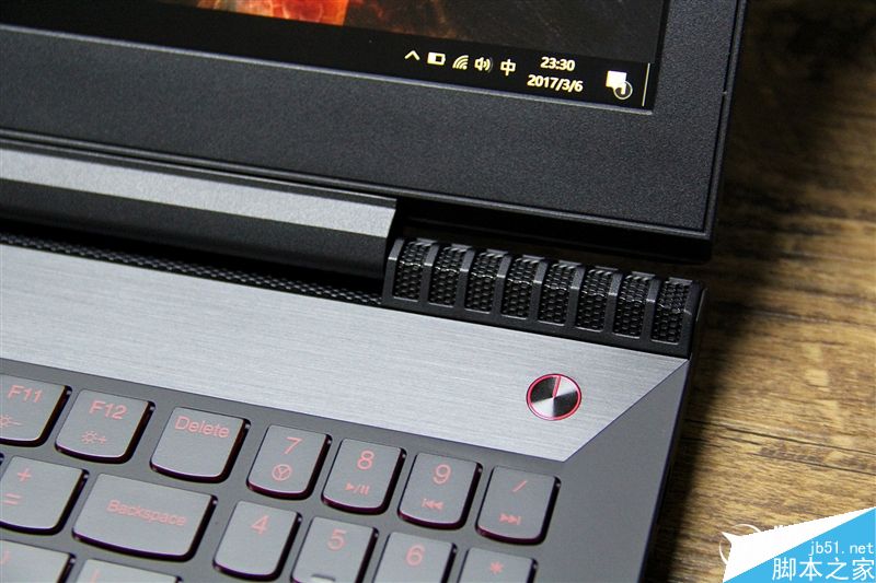 ↑↑↑不同于商務本以及輕薄本,游戲本對于音響系統這部分的要求顯然要更高,畢竟并非所有玩家在入手新本之后,都會單獨配一套外接音響,大部分情況下外放還是要依靠其自帶音響。拯救者R720配備了兩個哈曼卡頓揚聲器,分別位于機身左右兩側。