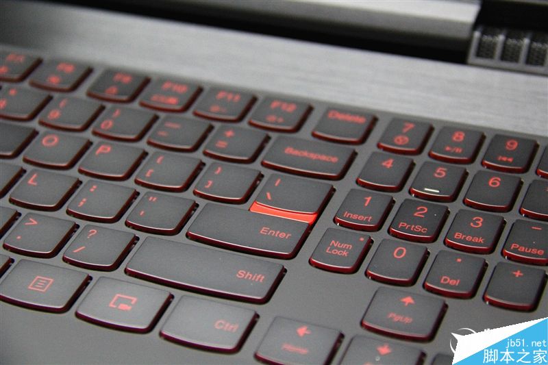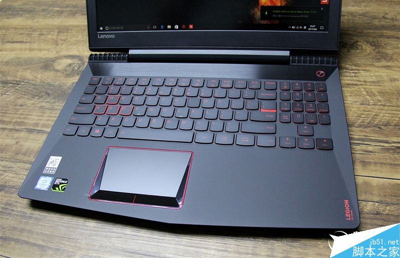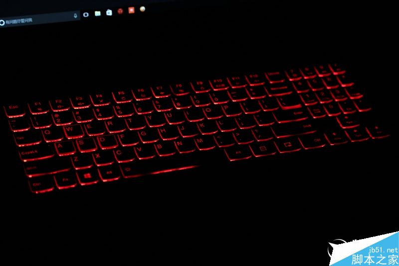 ↑↑↑拯救者R720的鍵盤和觸控板占據了C面的大部分區域,紅黑配色在夜間開啟背光(支持兩級背光)之后,效果十分炫目。