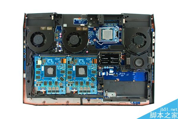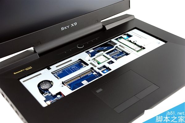 Sky X9E3整機重量為5.6公斤,內部塞進了桌面級硬件。旗艦機型包括一顆Intel Core i7-7700K和兩塊定制版的NVIDIA GeForce GTX 1080組成SLI,處理器和顯卡都采用接口設計,可后期升級更換。
