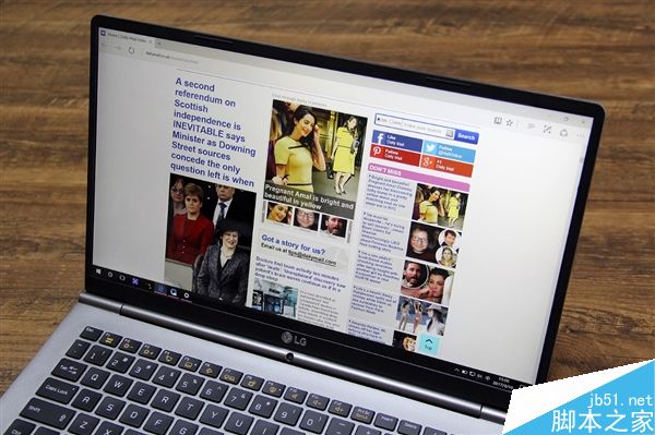 ↑↑↑15Z970采用超窄邊框設計,橫邊9.1mm,豎邊6.7mm。屏幕字體顯示效果清晰,1080p的分辨率放在15.6英寸的大屏幕上也沒有明顯顆粒感。而對于顯示屏的優化一直以來都是LG的優勢所在。