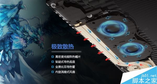 盡管CPU、顯卡發熱都不大,拯救者R720仍然采用了智能散熱系統,配備高密度純銅散熱鰭片、純黑散熱導管、聚能式導熱底座,以及蝸管式雙風扇。