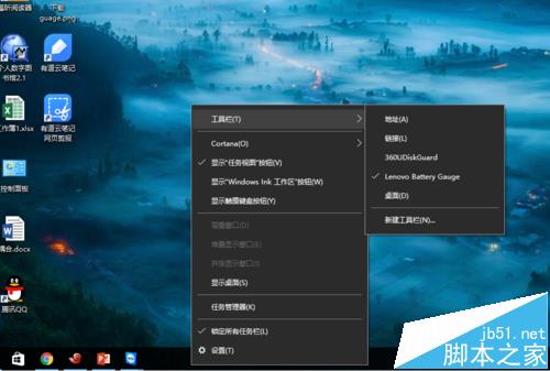 4、安裝完以上幾個驅(qū)動,可以重啟一下電腦,這時右鍵點(diǎn)擊任務(wù)欄,選擇工具,下面有 battery gauge