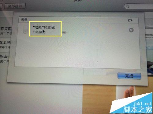 1、從藍牙設(shè)置里面找到鏈接的鼠標,現(xiàn)在名字是“哈哈”,點擊打開鼠標偏好設(shè)置。