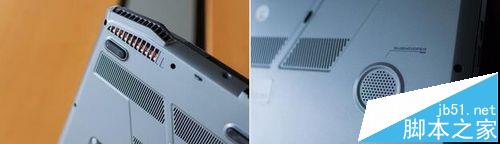 8、在底面,雷神911M同樣發(fā)揚了金屬色“太空科幻”風格,各種冷峻的線條配上金屬灰的顏色,讓人想起桌面上Nvidia大受好評的Titan 皮公版散熱器,魅力同樣不凡。其面積巨大的散熱窗和原型的音頻單元十分引人注目。