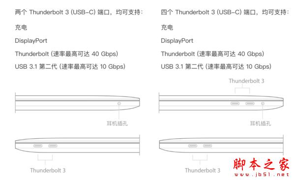 7、 Thunderbolt 3 端口:13英寸低配版只有2個