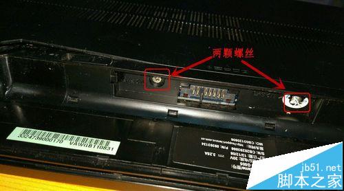 1、把筆記本電源線、電池去掉,在電池槽里有2個顆螺絲,擰掉螺絲(放在一邊)如圖
