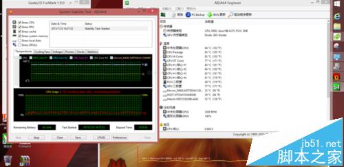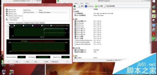 我們的測試方法是讓這款本本同時運行Furmark拷機軟件以及AIDA64 CPU穩定性測試軟件,從而讓CPU和GPU同時工作在較高的負荷下。經過二十五分鐘時左右的時間,查看這款本本的內部核心溫度。(測試時室內溫度約為24度)