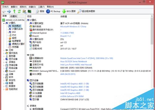 1、在硬件配置方面,本次拿到的這款華碩FX-Plus 配備了 22nm 制程工藝的英特爾酷睿 i7 4720HQ 四核處理器,配置了128GB固態和1TB機械硬盤,以及單條 8GB DDR3 1600MHz 高速內存,顯卡方面該機型采用了 NVIDIA GeForce GTX950M 獨立顯卡。