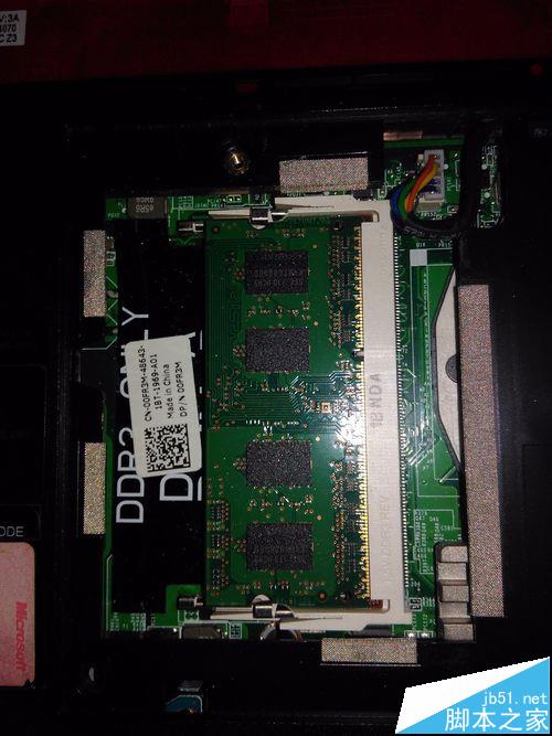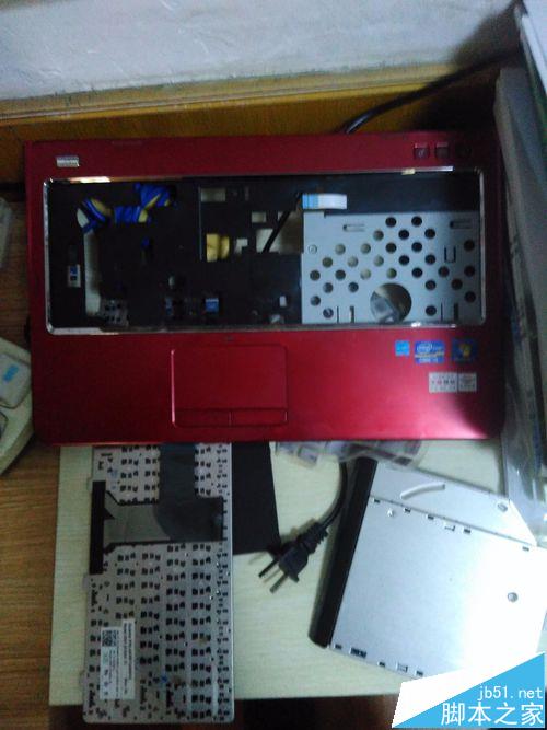 3、取下光驅。光驅有固定螺絲,擰下固定螺絲,向側面抽動光驅,取下光驅后,看到光驅下面有螺絲,擰下,為后面步驟做準備。同樣的也擰下電池下面的固定螺絲。